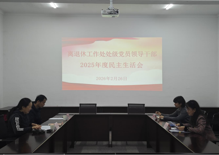 根据学校党委工作部署,离退休工作处党委于2026年2月26日上午,在会议室召开了2025年度处级党员领导干部民主生活会。学校督导组成员党委统战部部长张燕,聂洪喜到会督导。离退休工作处副处长侯静主持会议,王晶晶列席会议。